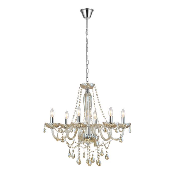 Πολυέλαιος Εξάφωτος 72xH130cm 6xE14 Χρώμιο -Μελί  Κονιάκ Eglo Basilano 39092