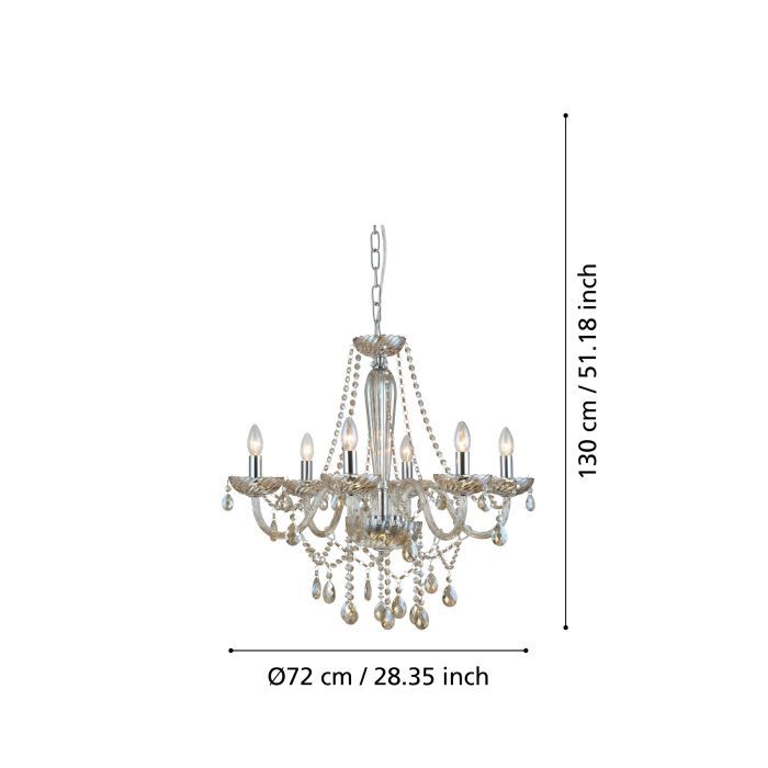 Πολυέλαιος Εξάφωτος 72xH130cm 6xE14 Χρώμιο -Μελί Κονιάκ Eglo Basilano 39092