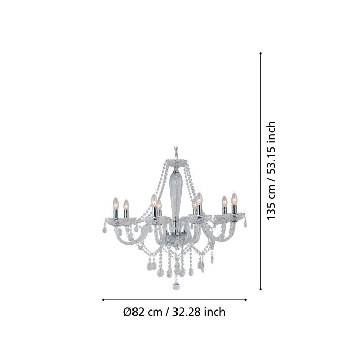 Πολυέλαιος Οκτάφωτος 82xH130cm 8xE14 Χρώμιο -Διάφανο Eglo Basilano 39101