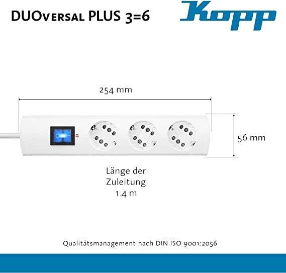 Kopp Πολύπριζο Ασφαλείας Πολλαπλών Θέσεων Τριπλό Μαύρο Διακόπτη DUOversal PLUS