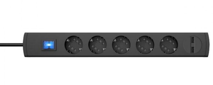 Πολύμπριζο Μαύρο 6 Θέσεων με Διακόπτη, Καλώδιο 3*1,5 & 2 Θύρες USB fast charge Duoversal Kopp 234905003