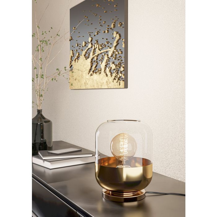 Μοντέρνο πορτατίφ της Eglo με βάση σε χρυσό χρώμα, από γυαλί.
