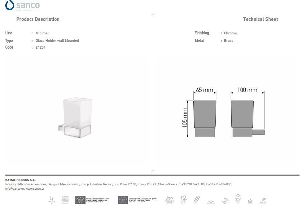 Πoτηροθήκη Επίτοιχη Sanco Minimal White Matt 24201-M101 Πoτηροθήκη Επίτοιχη Sanco Minimal White Matt 24201-M101