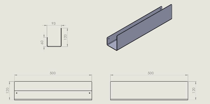 Ράφι Υψηλής Πρόσοψης με Αποστράγγιση W500xD93xH120mm Stainless Steel Black Matt Verdi Strantza 7233505