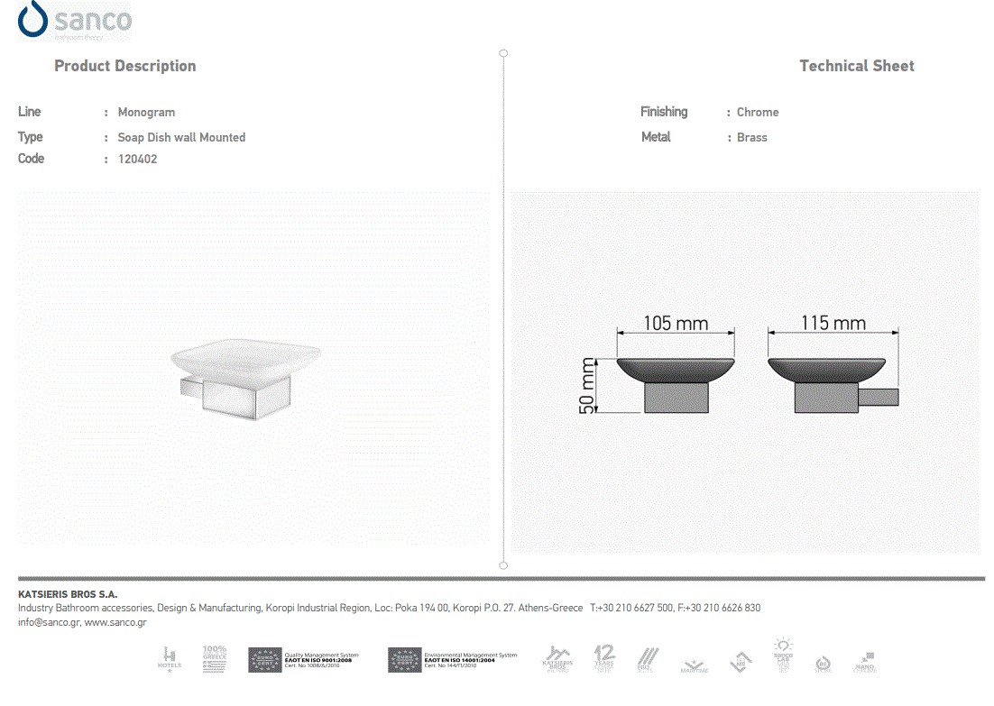 Σαπουνοθήκη Επιτοίχια Black Mat Sanco Monogram 120402-M116