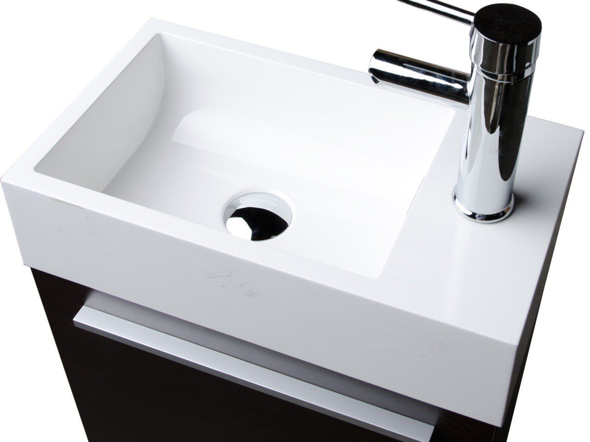 Σετ Κρεμαστό Έπιπλο Μπάνιου - Νιπτήρα 46 cm, Polished White Λευκή Λάκα Γυαλιστερή Λευκός ένθετος νιπτήρας από τεχνητό μάρμαρο τύπου Corian.
