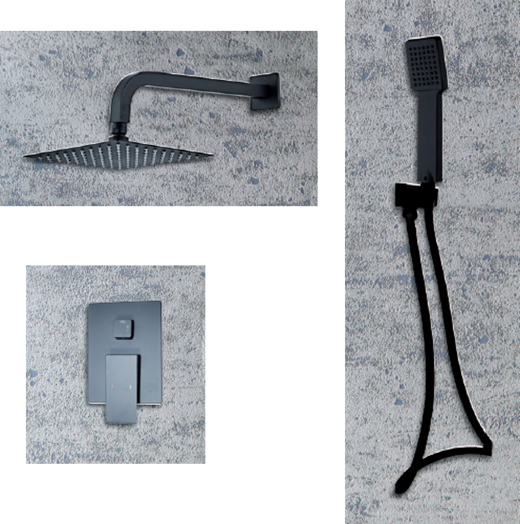 Σετ Εντοιχισμού 2 Εξόδων Μαύρο, Κώδωνας 20*20εκ., Βραχίονας, Παροχή με Στήριγμα, Σπιράλ & Τηλέφωνο Ravelli Square Black Matt 20007B