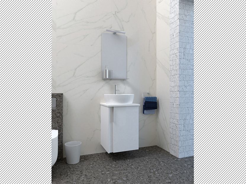 Το σετ Περιλαμβάνει: Βάση Επίπλου-Πάγκο -Νιπτήρα-Καθρέπτη-Φωτιστικό
