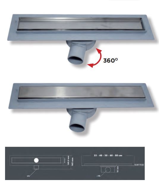 Σιφώνι Ντουσιέρας Γραμμικό 80cm Πλαστικό σώμα, Σχάρα SS304 Domistyle 23117