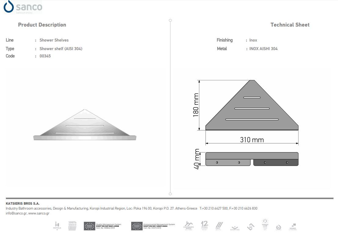 Σπογγοθήκη-Ραφιέρα Επιτοίχια W29xD13xH5cm Inox Aishi 304 Sanco Shower Shelves 0344-A90Ειδική Τιμή 49,50 € Κανονική τιμή 55,00 € -