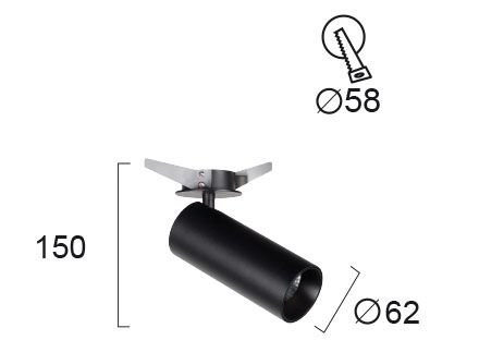 - ✔ Περιγραφή: Σποτ Οροφής Χωνευτό Η:150 Μαύρο Reeds
