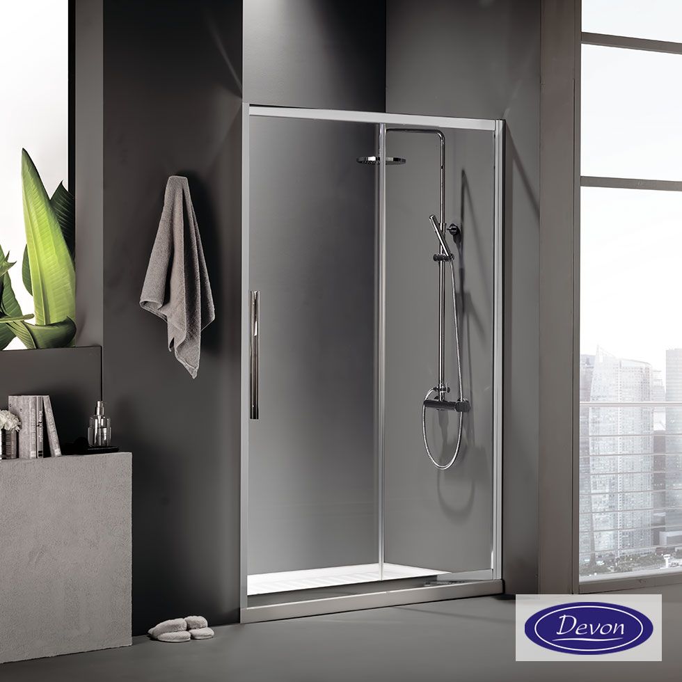 Συρόμενη πόρτα καμπίνας ντουζιέρας Flow 150 ύψους 195εκ. ρυθμιζόμενη από 147 έως 151εκ. Devon Clean Glass Chrome SLF150C-100