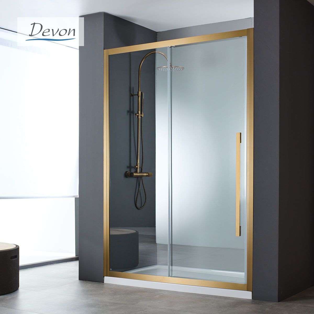 Συρόμενη πόρτα καμπίνας ντουζιέρας Noxx 140 ύψους 200εκ. ρυθμιζόμενη από 137 έως 139εκ. Devon Clean Glass AISI304 PVD Bronze Brushed SLN140C-221