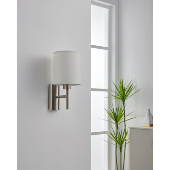 Φωτιστικό Απλίκα Επιτοίχια 1xE27 L145xA195xH305mm Νίκελ Ματ-Λευκό Ύφασμα Eglο Pasteri 94924