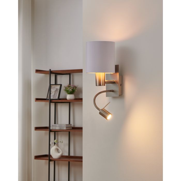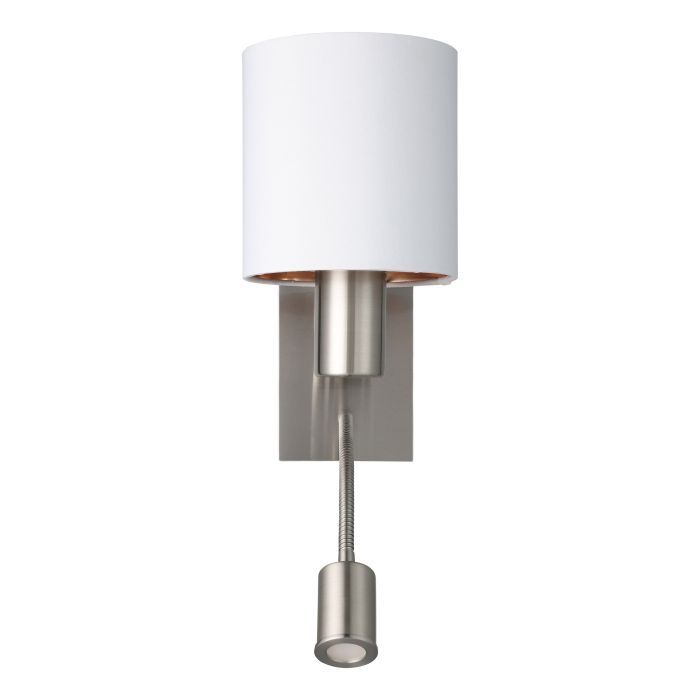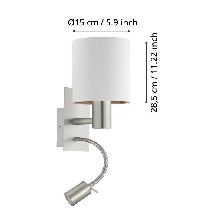 Φωτιστικό Απλίκα Επιτοίχια 1xE27 +Led 3,8w 320lm L150xA195xH380mm Νίκελ Ματ-Λευκό Ύφασμα- Χρώμα Χαλκού Eglο Pasteri 96484