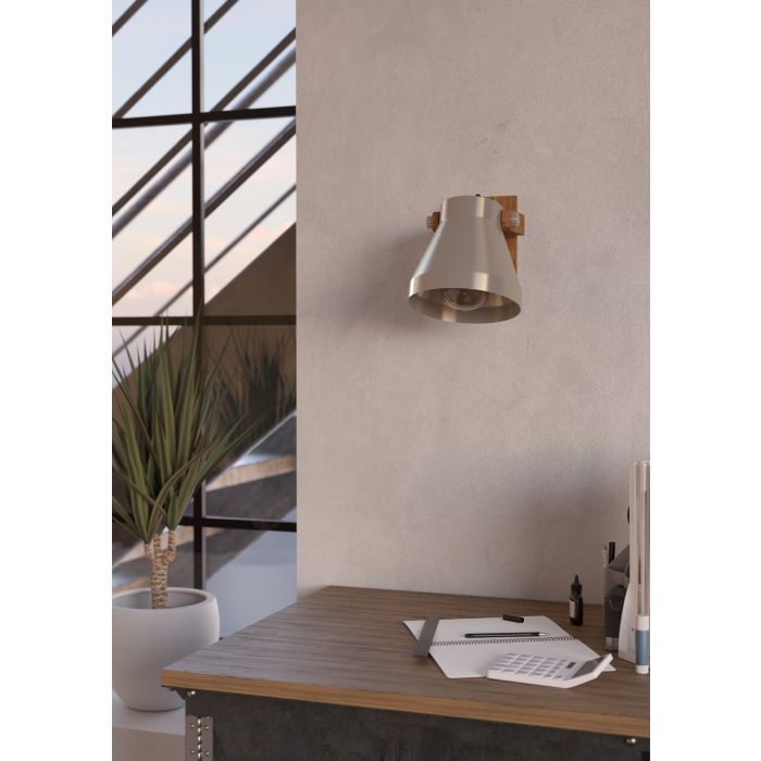Φωτιστικό Απλίκα Σποτ Κινητό Μονόφωτο 1xE27 Α300xL160xH195mm Χάλυβας-Ξύλο Ρουστίκ Καφέ Eglo Cawton 43948