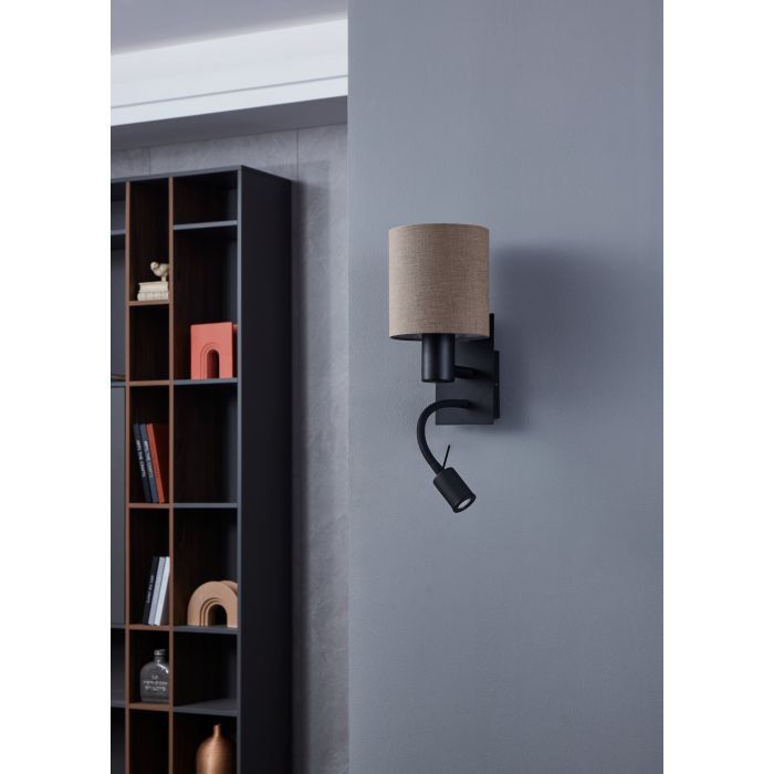 Φωτιστικό Απλίκα Τοίχου 1xE27 με Σποτ Διαβάσματος Μέταλλο Μαύρο Ύφασμα Γκρι Eglo Pasteri 900701