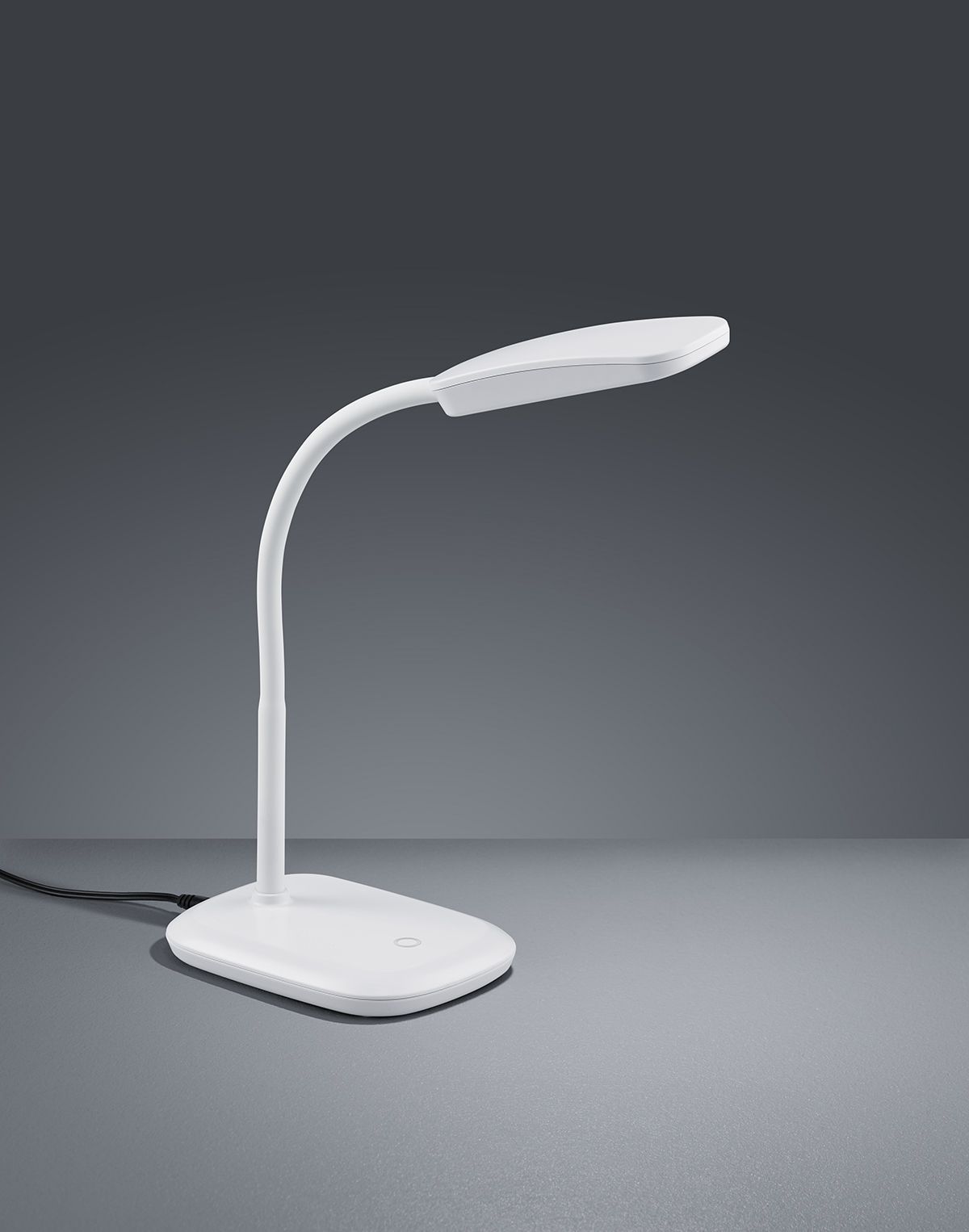 The table lamp can be individually adjusted thanks to its simple shape and flexible neck.