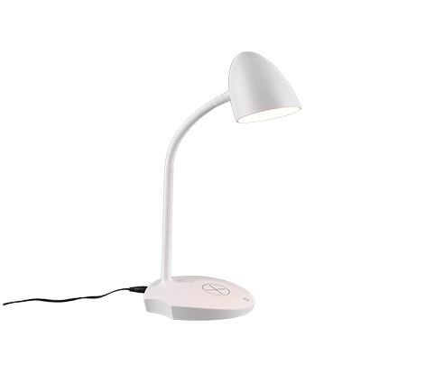The flexibly adjustable lamp head makes the light ideal for use as desk lighting. As an additional function, the light has an inductive charging station.