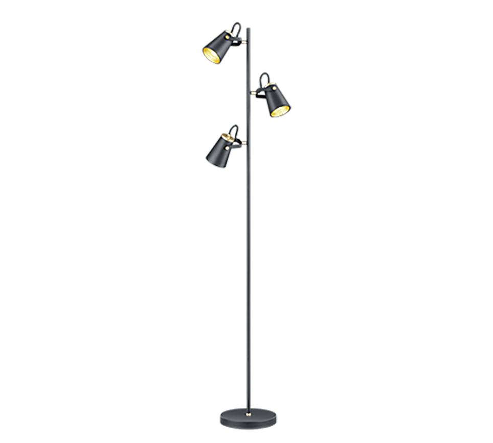 The three lamp heads of the 160 cm high floor lamp can be individually aligned to highlight specific areas.