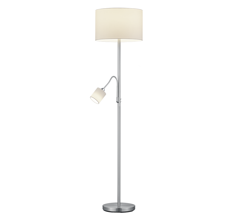 Φωτιστικό Δαπέδου 40xH170cm με Βοηθητικό Διαβάσματος Νίκελ Ματ Βραχίονας Λευκό Υφασμάτινο Καπέλο Trio Lighting Hotel 403900201