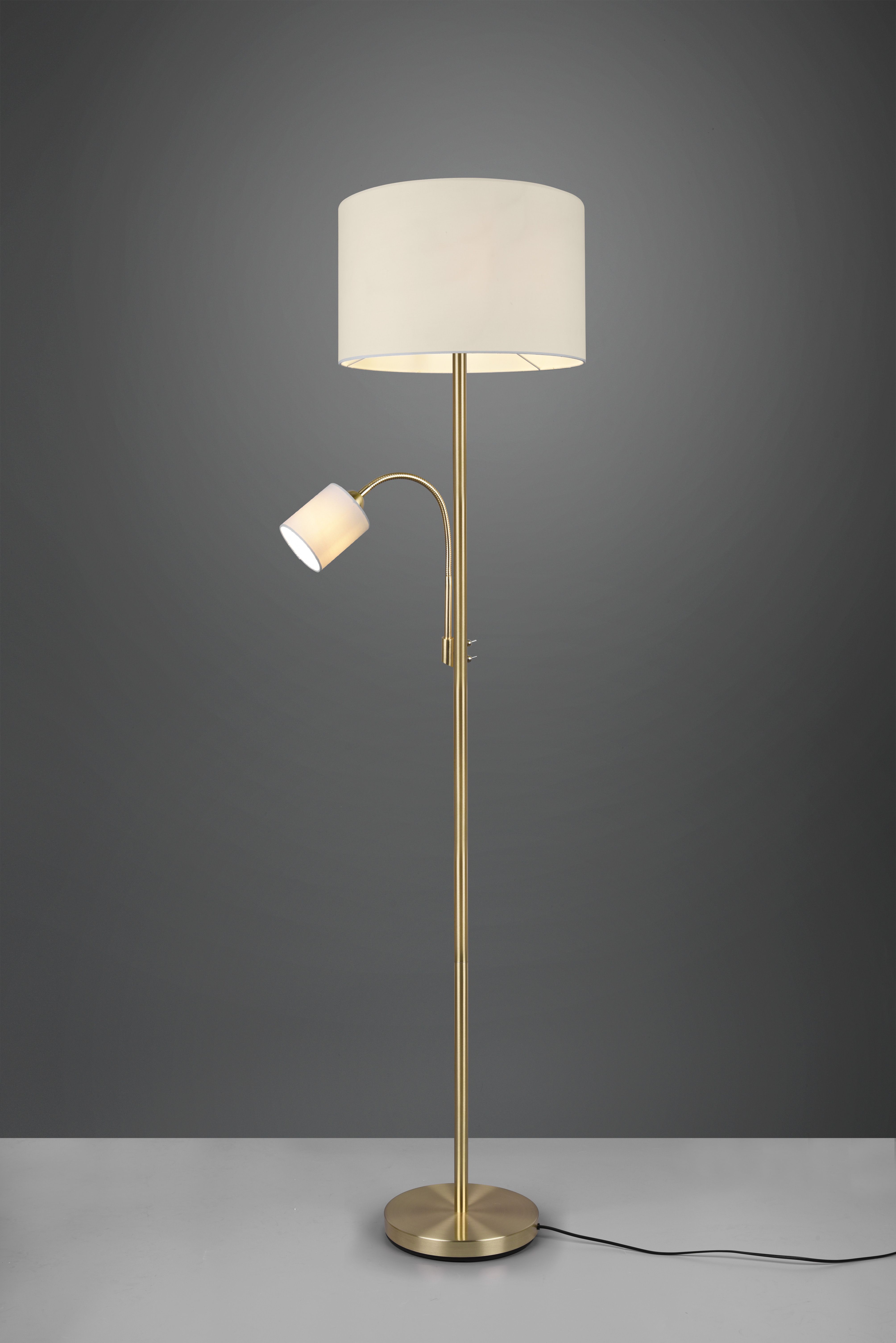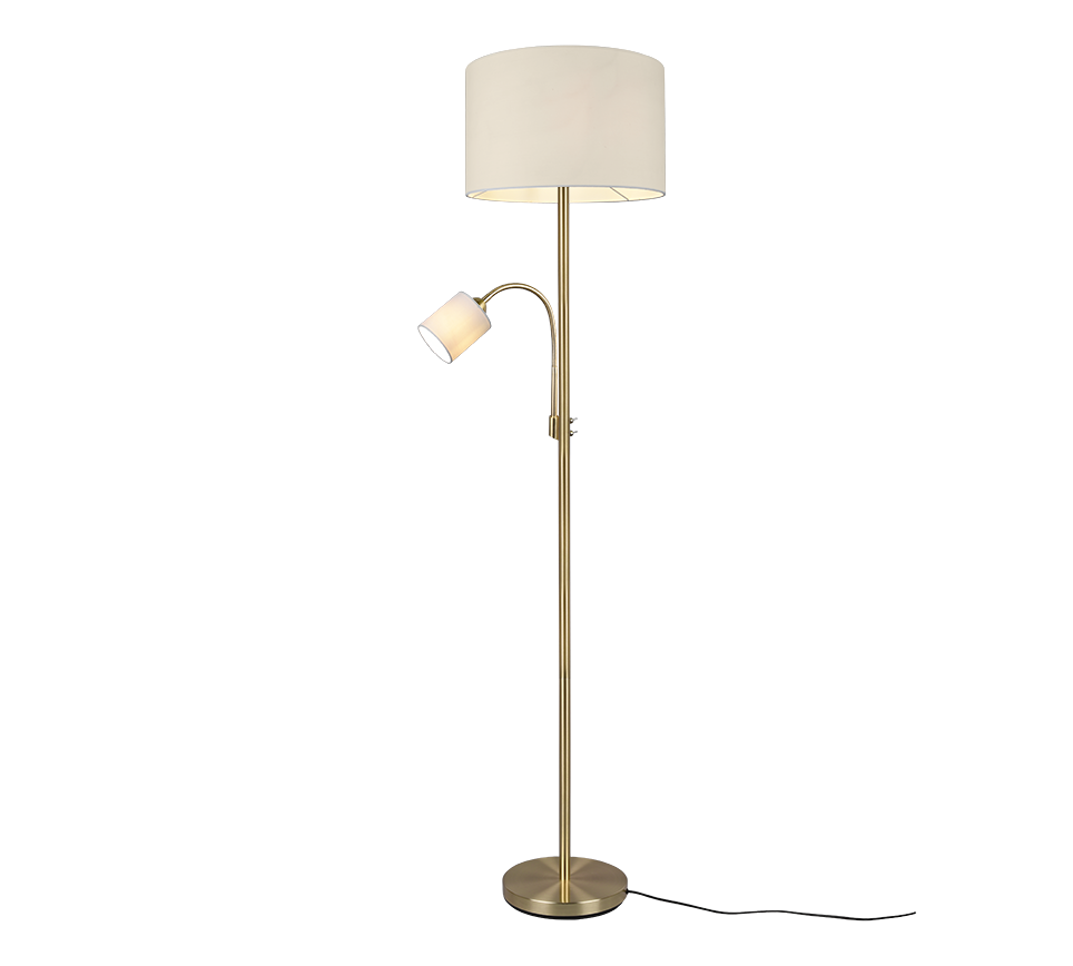 Φωτιστικό Δαπέδου 40xH170cm 1xE27 με Βοηθητικό Διαβάσματος 1xE14 Brassed Color Βραχίονας Λευκό Υφασμάτινο Καπέλο Trio Lighting Hotel 403900208