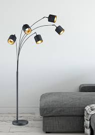 Φωτιστικό Επιδαπέδιο Ύψος 200εκ. Πεντάφωτο Μαύρο / Αμπαζούρ Υφασμάτινο Μαύρο Trio Tommy R46330579