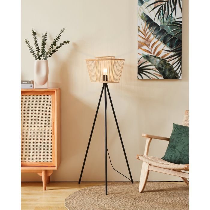 Φωτιστικό Επιδαπέδιο Τρίποδο Ø630xH1295mm Αμπαζούρ Ø380mm 1xE27 Μπαμπού-Μαύρο Eglo Hykeham 43855