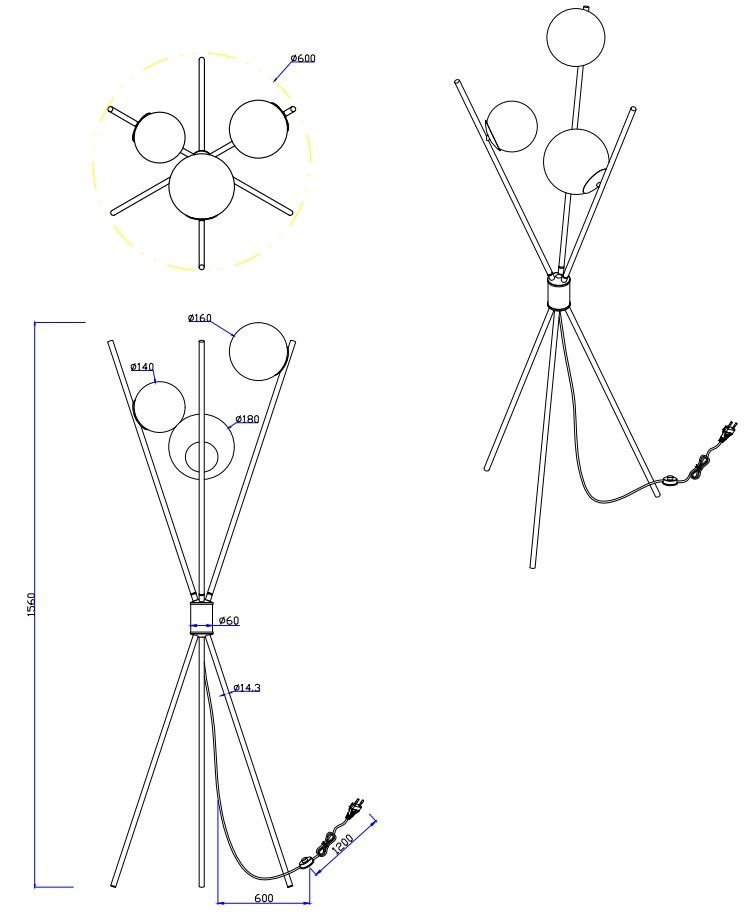 Φωτιστικό Επιδαπέδιο Τρίποδο Τρίφωτο 156 εκ. Μαύρο-Πολύχρωμες Μπάλλες Trio Lighting Lance 403400317