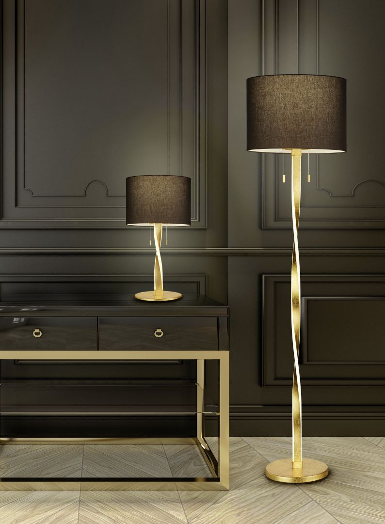 Στην οικογένεια φωτιστικών Trio Nandor διατίθενται σε Νίκελ Ματ & Χρυσό Επιτραπέζιο Λαμπατέρ & Επιδαπέδιο.