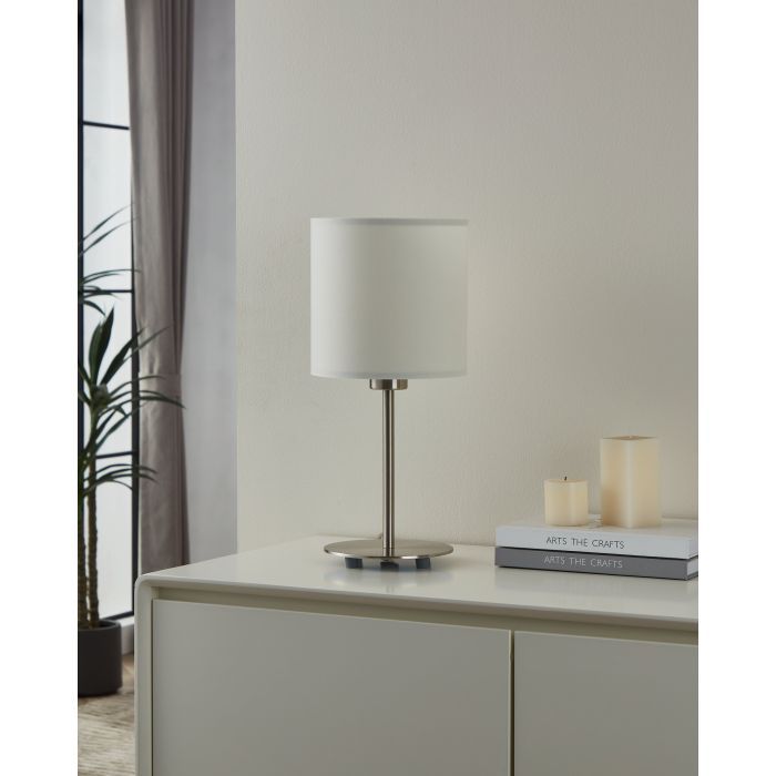 Φωτιστικό Επιτραπέζιο 1xE27 Ø180xH400mm Νίκελ Ματ-Λευκό Ύφασμα Eglο Pasteri 31594
