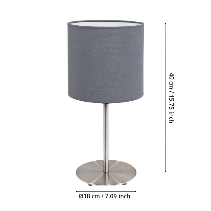 Φωτιστικό Επιτραπέζιο 1xE27 Ø180xH400mm Νίκελ Ματ- Ύφασμα Γκρι Eglο Pasteri 31596