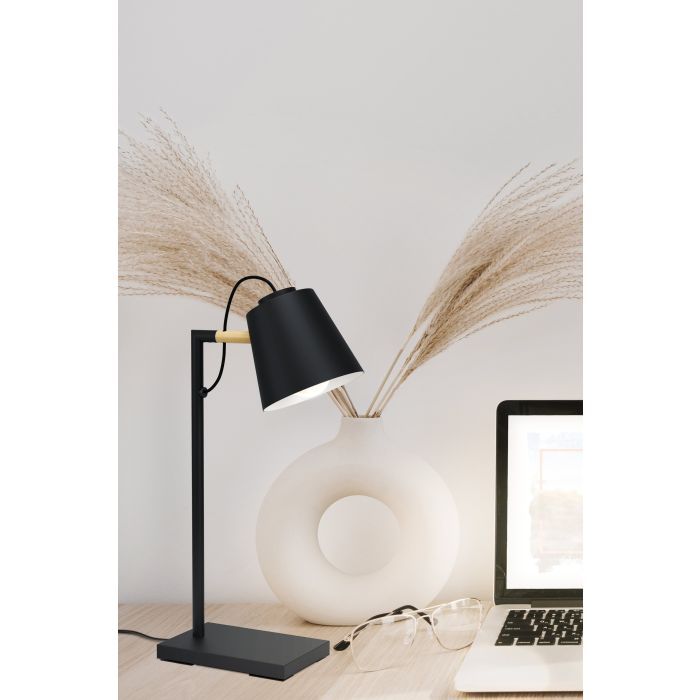 Φωτιστικό Επιτραπέζιο L255xB170xH435mm 1xE14 Μέταλλο-Ξύλο Μαύρο Καφέ Eglo Lacey 43613