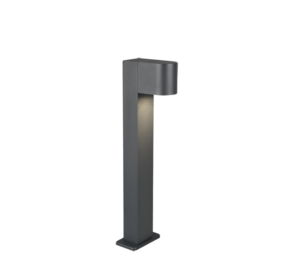 Κολωνάκι φωτισμού της Trio Lighting σε γκρι χρώμα, για χρήση σε εξωτερικούς χώρους. Διαθέτει βαθμό προστασίας IP44, που δηλώνει ότι δεν μπορούν να εισχωρήσουν στερεά αντικείμενα άνω του ενός χιλιοστού αλλά ούτε και νερό με μεγάλη ένταση. Εκπέμπει θερμό λευκό φως που αποδίδεται στην κλίμακα Kelvin με τιμές από 2400Κ έως 3800Κ. Αυτοί οι τόνοι του λευκού είναι πιο κίτρινοι σε σχέση με το φυσικό φως.