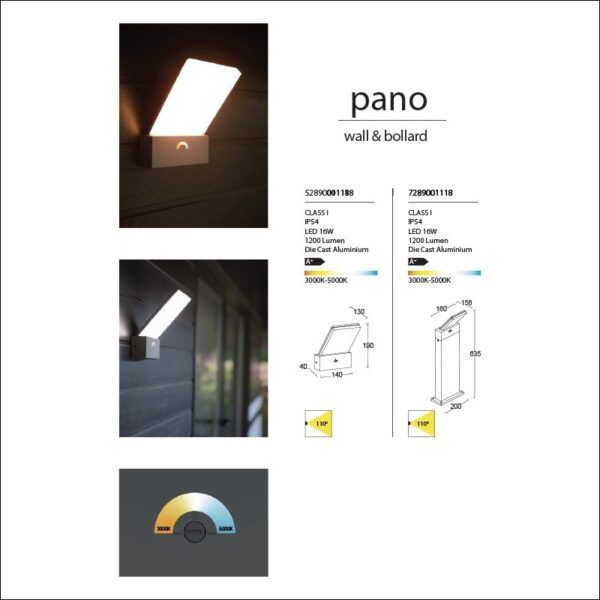 Φωτιστικό Απλίκα Τοίχου IP54 17,5w 1300lm 3000-5000Κ 116° 140x40xY190mm Dark Grey Χυτό Αλουμίνιο Lutec Pano 5289001118Ειδική Τιμή 45,59 € Κανονική τιμή 56,53 € -
