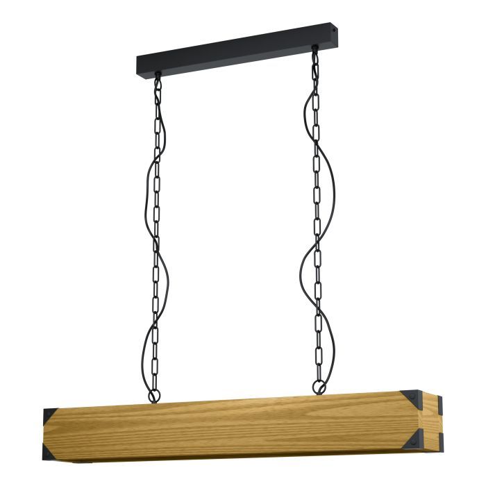 Φωτιστικό Κρεμαστή Τετράφωτη Ράγα 90 εκ. Μαύρο Μέταλλο/ Ξύλο Καφέ Eglo Harborough 43159.