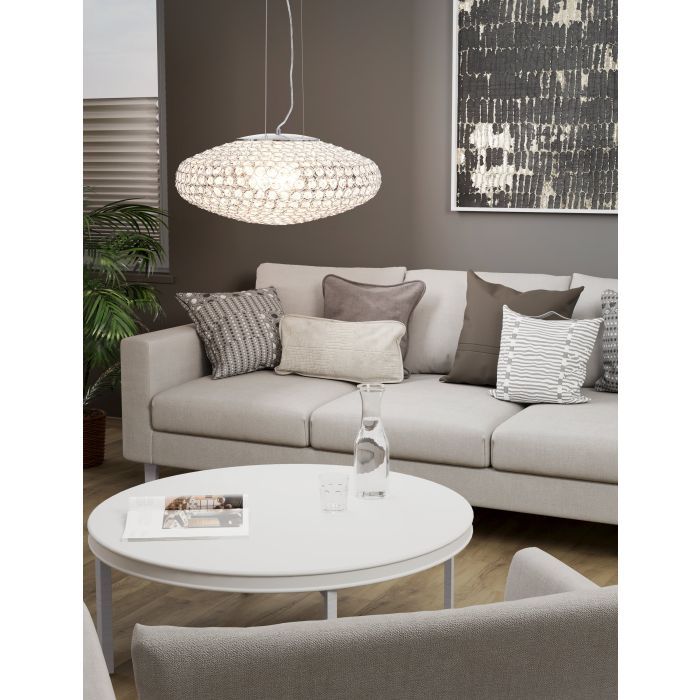 Φωτιστικό Κρεμαστό Ø540xH1100mm 3xE27 Ατσάλι Χρωμέ-Κρυσταλλάκια Eglo Clemente 95287