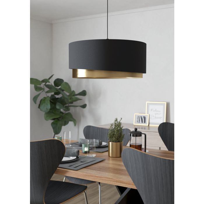 Φωτιστικό Κρεμαστό Ø560xH1500mm 1xE27 Ύφασμα Μαύρο-Μέταλλο Ορείχαλκος Eglo Manderline 39926