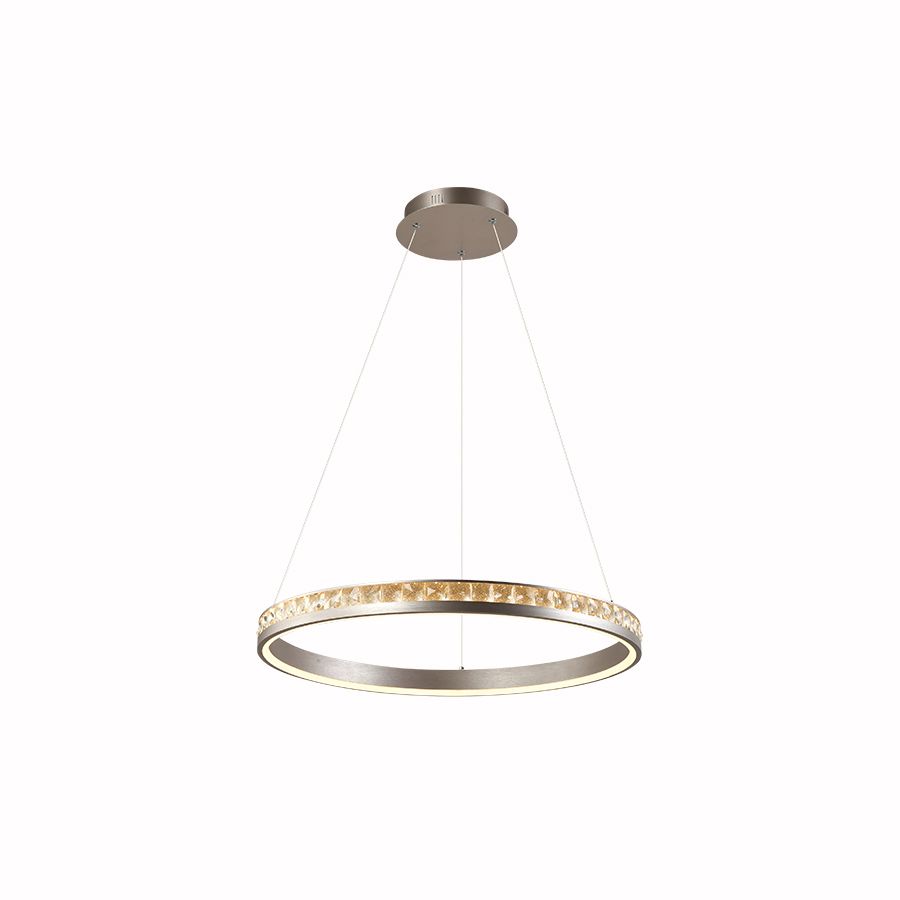 Πολύφωτο κρεμαστό φωτιστικό μονός κύκλος LED κατασκευασμένο από αλουμίνιο σε χρώμα Dark Nickel και κρύσταλλο Κ9.Ύψος: 120εκ.Διάμετρος: 58,7 εκ.Τύπος Λαμπτήρα: LEDWatt: 40WLumen: 2000LmΘερμοκρασία Χρώματος: 3000KDimmable: Ναι (Triac)