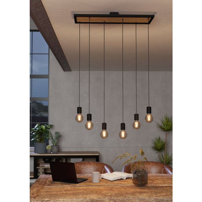Φωτιστικό Κρεμαστό Εξάφωτο L780xB250xH1100mm 6xE27 Μέταλλο Μαύρο-Ξύλο Φυσικό Eglo Consett 43725
