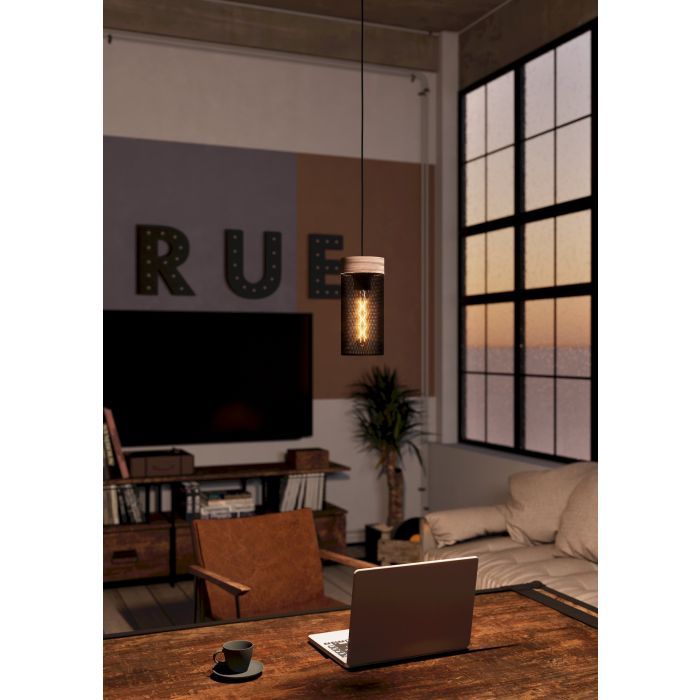 Φωτιστικό Κρεμαστό Μονόφωτο Ø110xH1100 mm 1xE27 Ξύλο-Μαύρο Ατσάλι Eglo Kilnsdale 43833