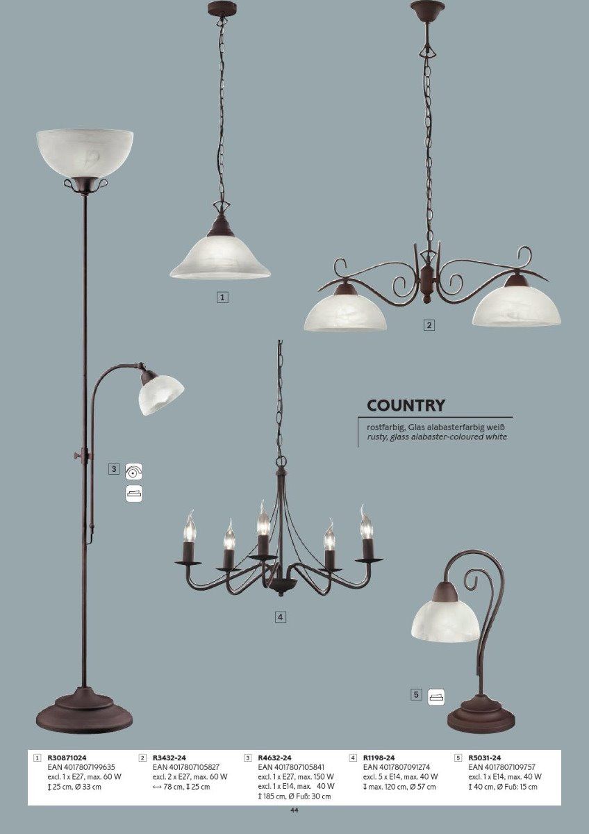 - Φωτιστικό Κρεμαστό Ράγα 82 εκ. Δίφωτο Κορμός Καφέ Σκουριάς / Αμπαζούρ Λευκός Αλάβαστρος Trio Country R3432-24 Ειδική Τιμή 110,00 € Κανονική τιμή 162,00 €