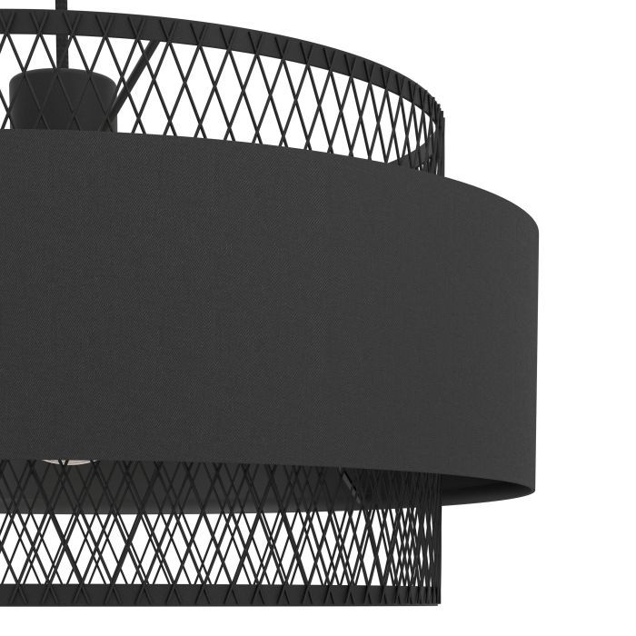 Φωτιστικό Κρεμαστό Μονόφωτο Ø400xH1100 mm 1xE27 Ύφασμα Μαύρο Ατσάλι Eglo Bazely 43668