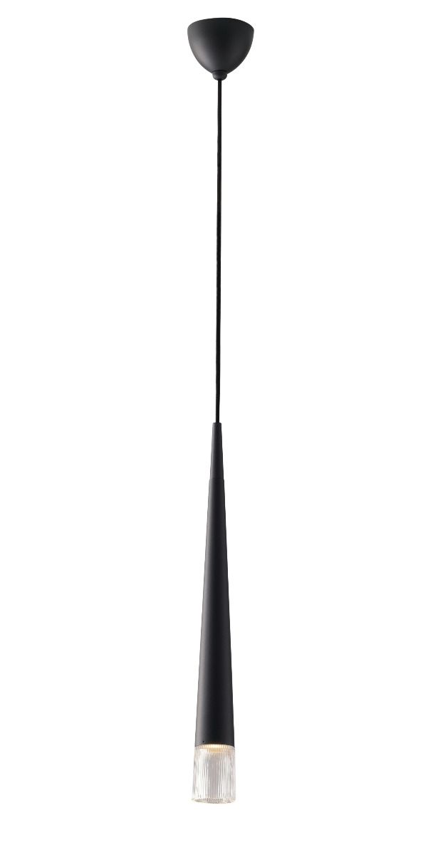 Φωτιστικό Κρεμαστό Μονόφωτο Μέταλλο Μαύρο, Διαχύτης Γυαλί Διάφανο με σχέδια, Faneurope Luce Ambiente Desing I-Lancelot-S Nero 8031414870073