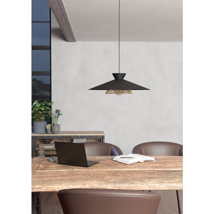 Φωτιστικό Κρεμαστό Μονόφωτο 1xE27 Ø500xH1100mm Μέταλλο-Μαύρο-Ορείχαλκος Eglo Grizedale 43885