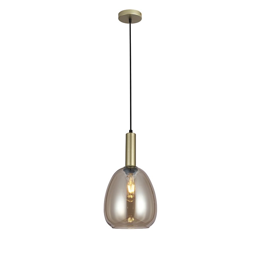 Μονόφωτο κρεμαστό φωτιστικό κατασκευασμένο από χειροποίητο γυαλί σε χρώμα μελί και μέταλλο σε χρυσό ματ.Διάμετρος Γυαλιού : 20 εκ.Ύψος: 120 εκ.Τύπος Λαμπτήρα: E27Λαμπτήρες: 1 τεμ. Max 60W