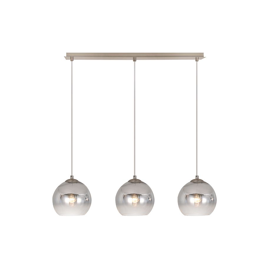 Τρίφωτο κρεμαστό φωτιστικό σε ράγα κατασκευασμένο από χειροποίητα γυαλιά χρώμιο ντεγκραντέ και μεταλλική βάση σε νίκελ ματ σατινάτο.Ύψος: 120 εκ.Διάμετρος Γυαλιού : 18 εκ.Μήκος: 70 εκ.Λαμπτήρες: 3 τεμ.Τύπος Λαμπτήρα: Ε27Watt: 60| Χρώμα | Ασημί-Χρωμέ-Inox-Nickel-Αλουμίνιο |