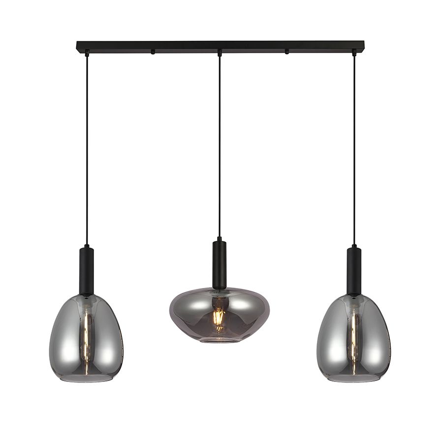 Τρίφωτο κρεμαστό φωτιστικό σε ράγα κατασκευασμένο από χειροποίητα γυαλιά σε χρώμα φιμέ και μέταλλο σε μαύρο ματ.| Χρώμα | Μαύρο-Black |