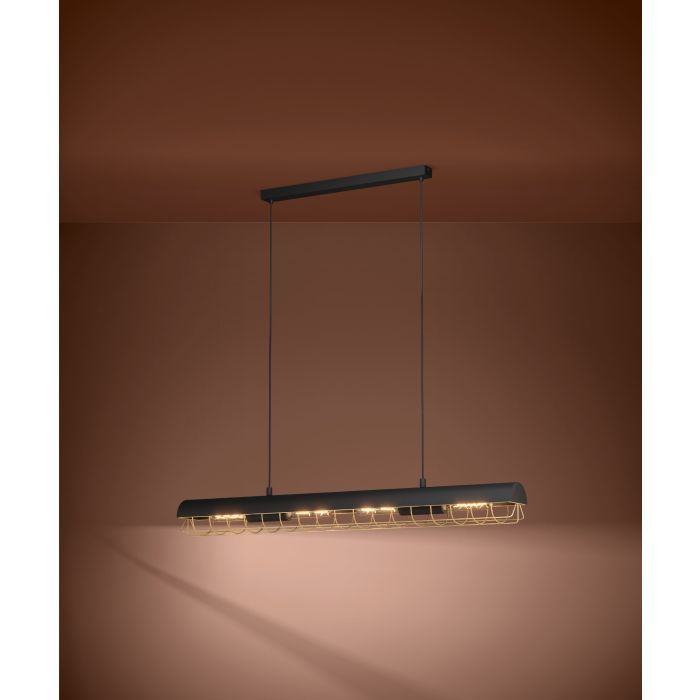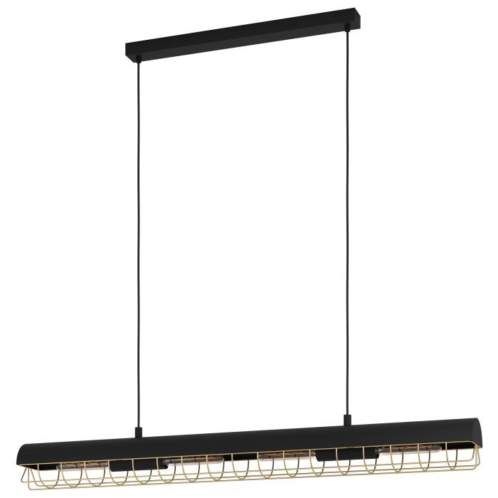Φωτιστικό Κρεμαστό Ράγα L1160xB120xH1100mm 4xE27 Μαύρο-Ορείχαλκος Eglo Star of Lights Alfonsine 390059