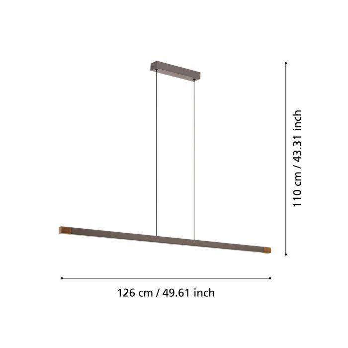 Φωτιστικό Κρεμαστό Ράγα L1260xB35xH1100mm Led 22w 2500lm Warm White Μέταλλο Γκρι-Ξύλο Eglo Lisciana 900175